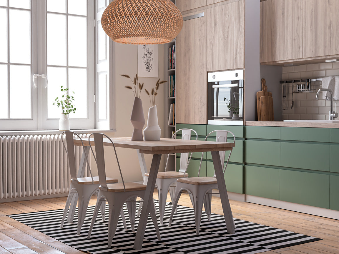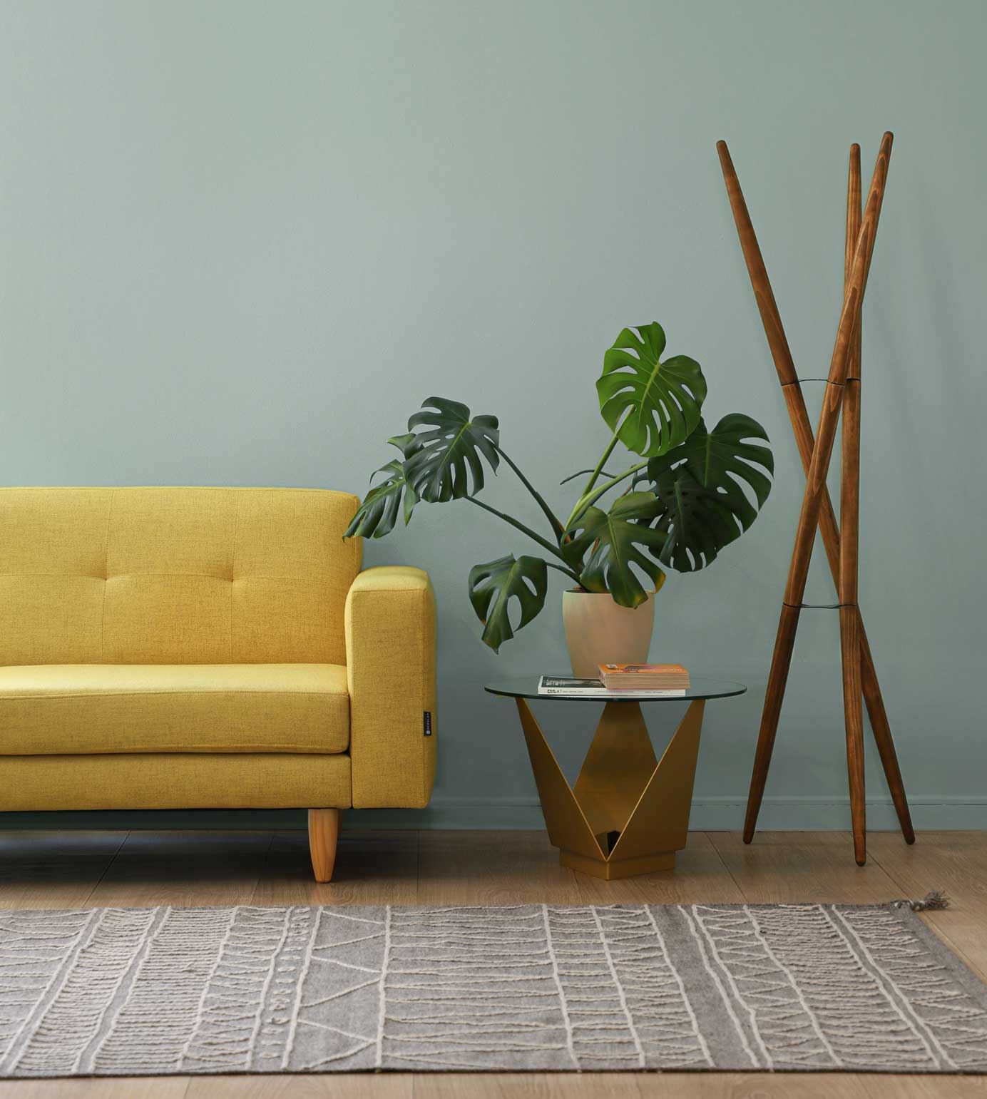 La mesa lateral metálica, con su estructura ligera y escultórica, introduce un contrapunto moderno y delicado, ideal para equilibrar la composición. Todo el conjunto respira armonía: un salón pensado para habitar con pausa, donde cada elemento convive en perfecta proporción y cada detalle contribuye a una atmósfera de sofisticación cotidiana. Ideal para quienes buscan un lenguaje visual limpio, con alma y profundidad.
